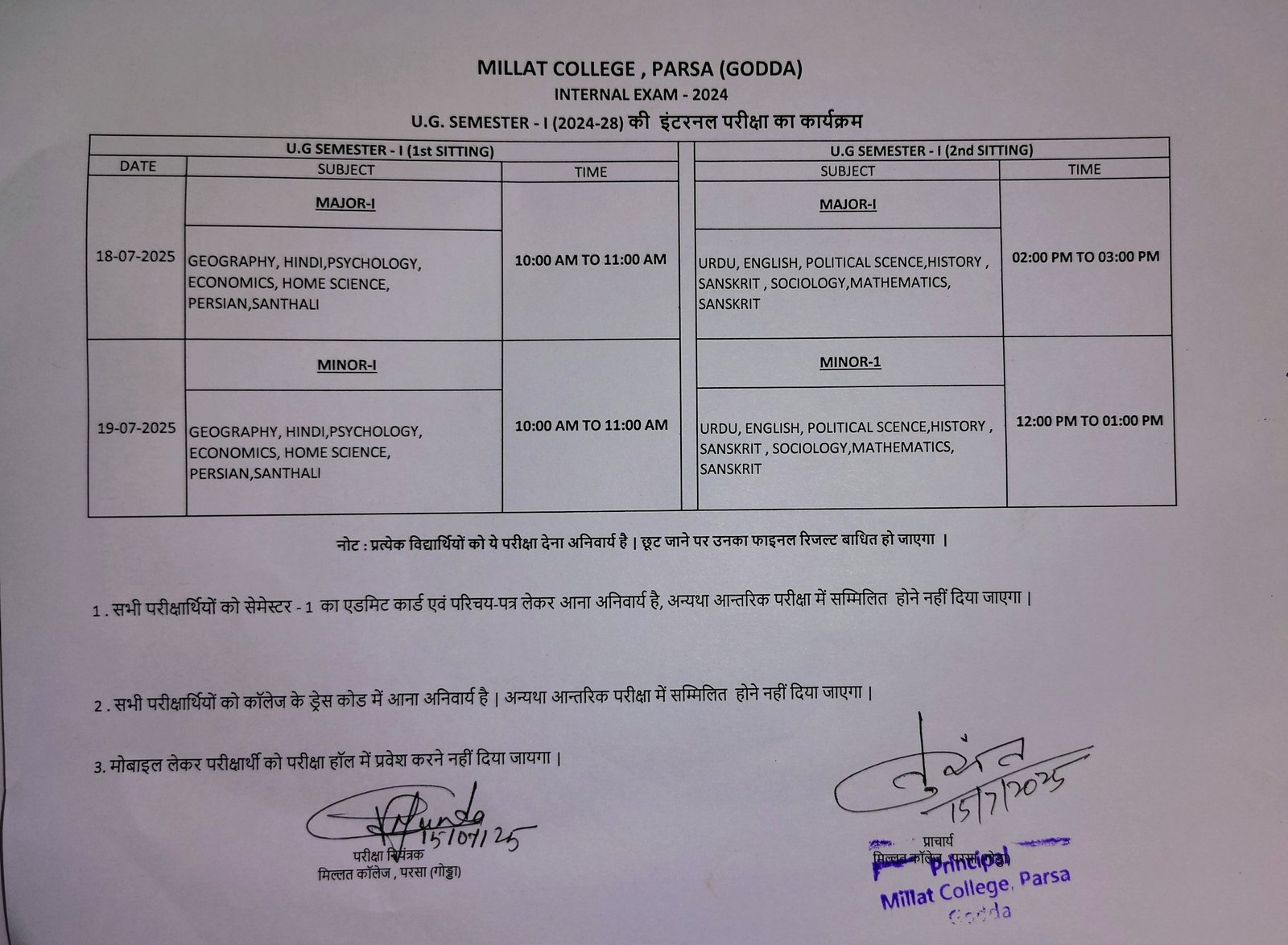 05-07-2025The College was established with the mission to provide higher education and uplift minorities, backward caste and scheduled caste dominated population of the region. The region of Parsa of Godda district have majority of rural universe. Therefore, access of higher education is arduous for most of the learners. Millat College, Parsa endeavers to spread the rays of knowledge among each and very underprivileged students of the society.