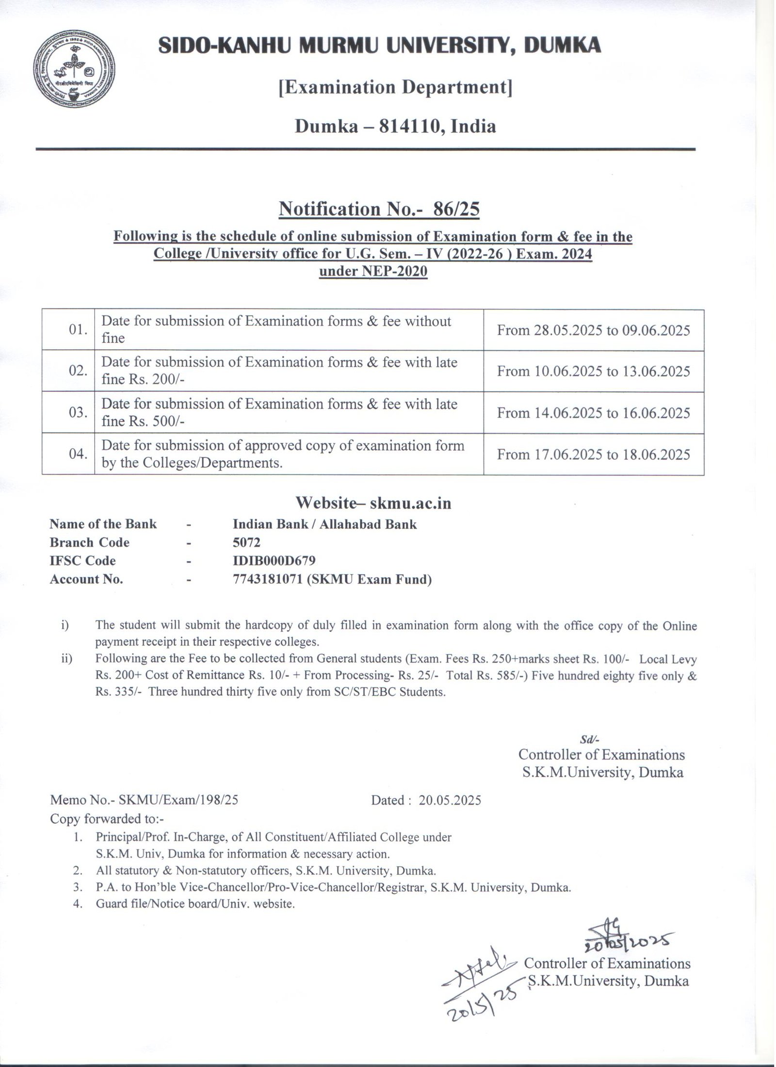 24 May 2025 Download Attached FileUG Semester - 4 Exam form ( 2022-26 )