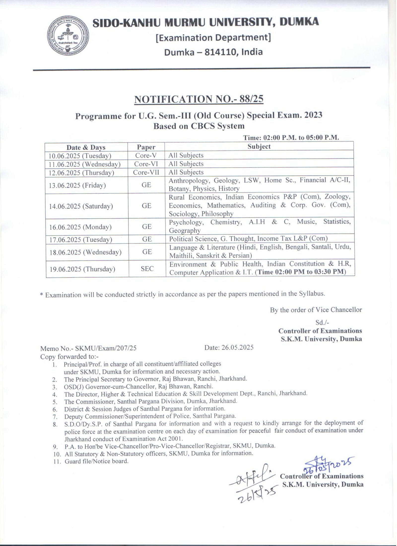 26 May 2025 Download Attached FileOld Course BA Semester -III Special Exam. Programme
