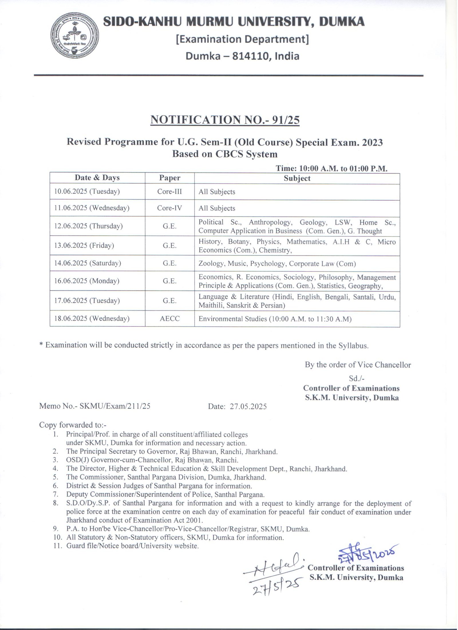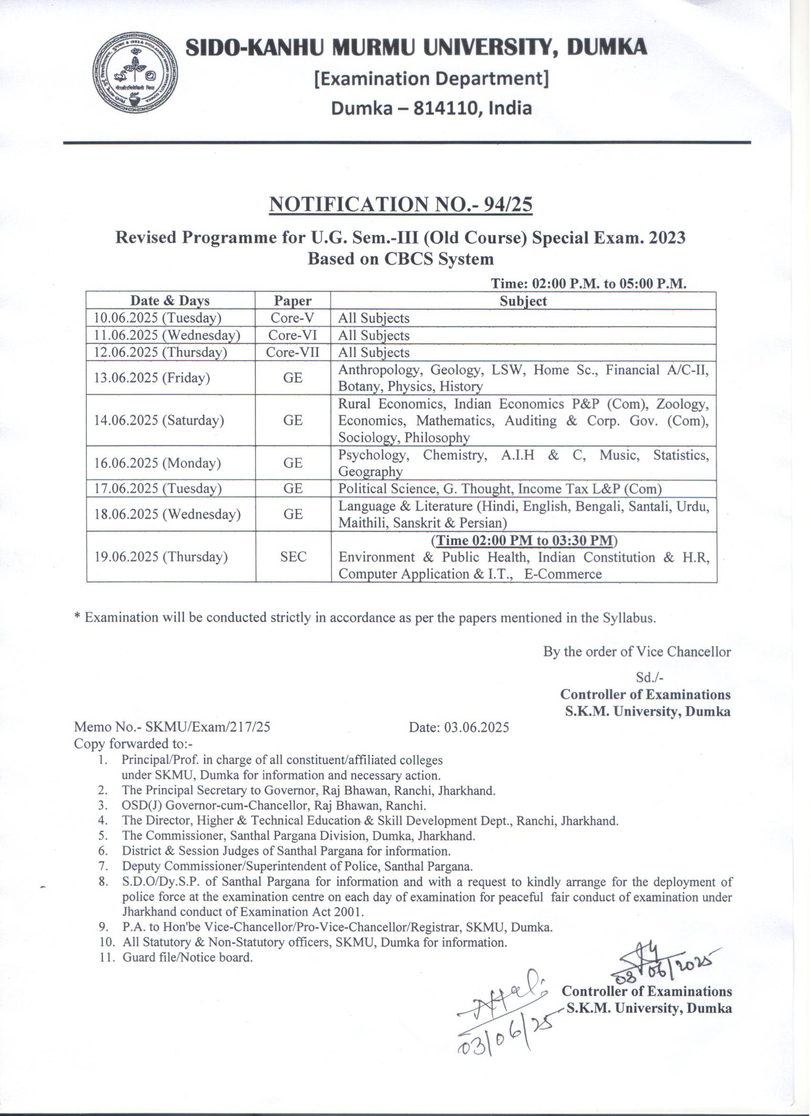 07 June 2025 Download Attached FileRevised Programme BA Semester -III (Old Course)