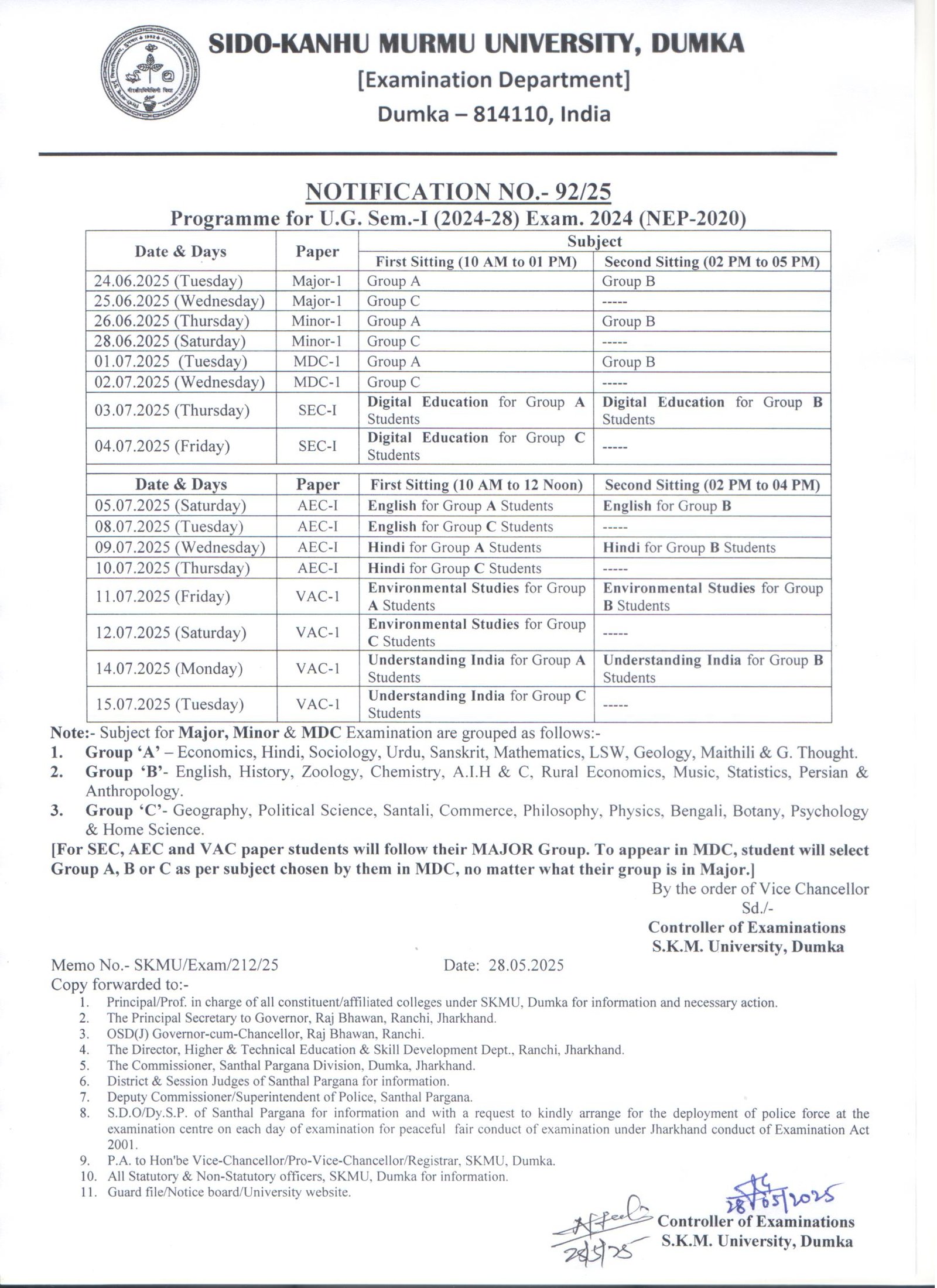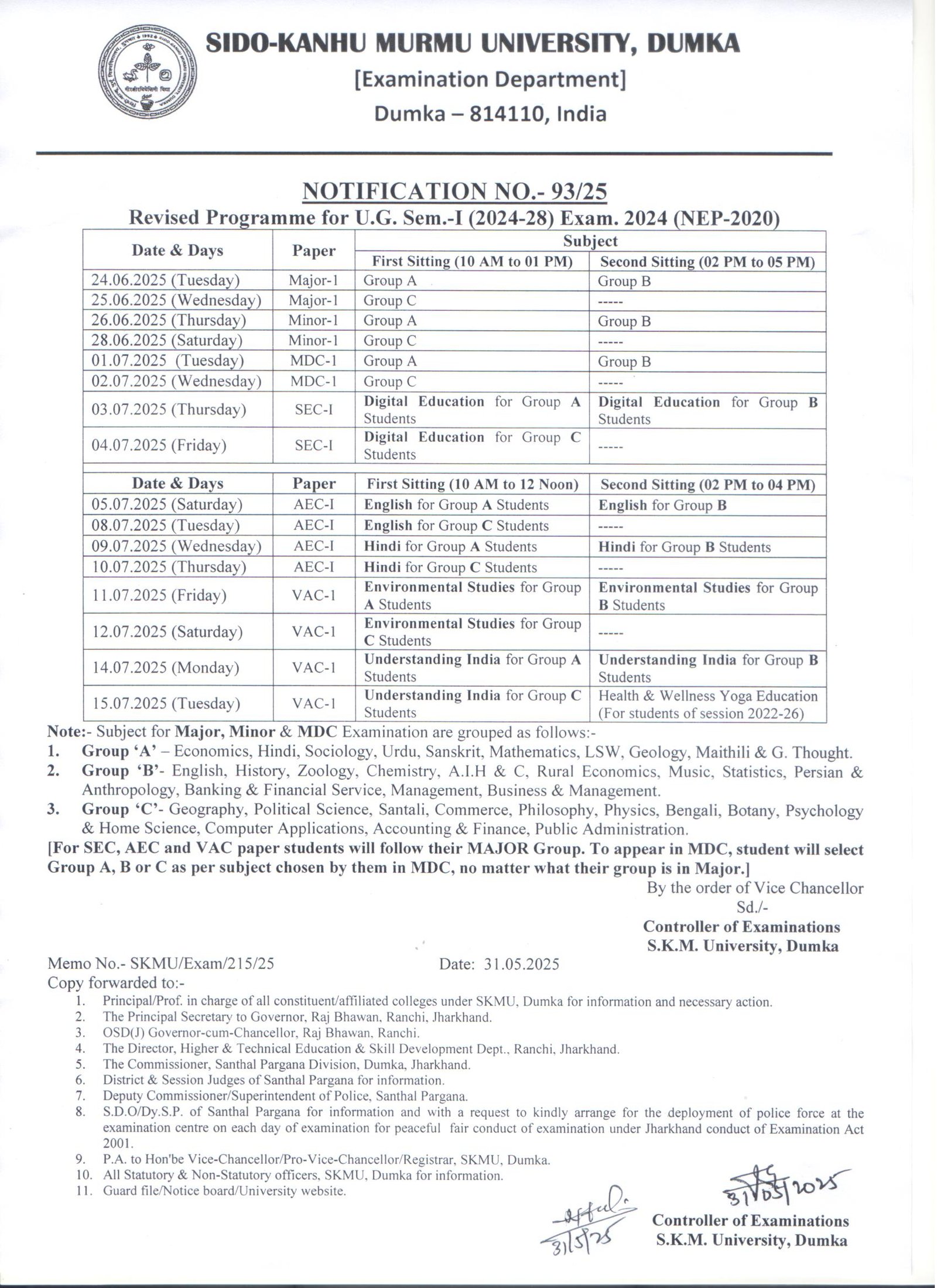 31 May 2025 Download Attached FileNEP UG Semester - 1 Exam. Programme (2024-28)
